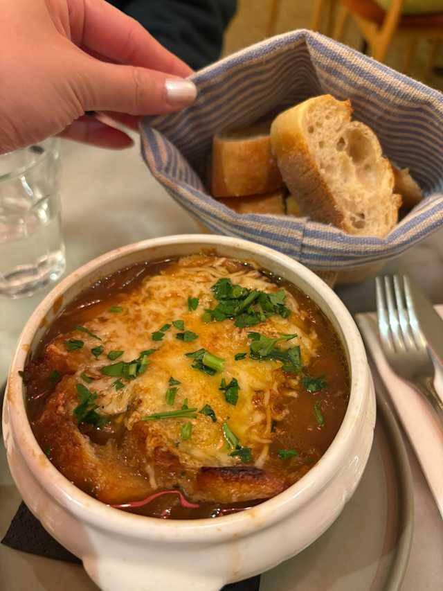 9/10Soupe a l'oignon was super, but the croque madame were underwhelming. Waiters and ambience are super nice and quantity was really good. Hope we could return and try other dishes!