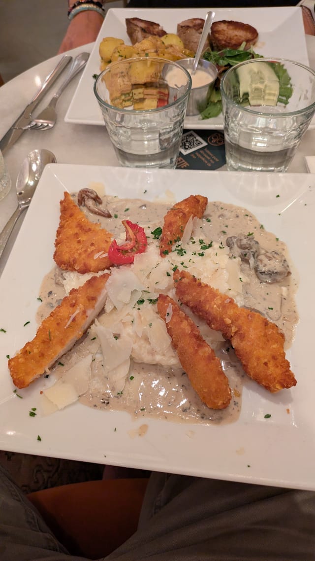 5.5/10Risotto was barely warm, steak was unpleasant and tough. Service was friendly. All in all a pretty mediocre place, don’t know why ratings are as good as they are.