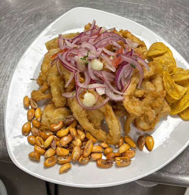 - (Cebolla, pescado, zumo de limón, chocio, cancha)
