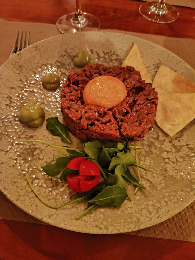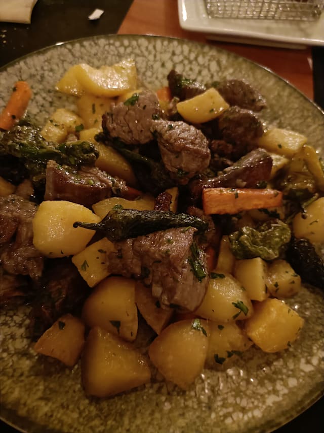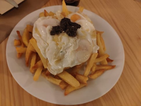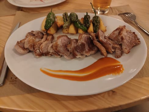 7/10Food was very good. Place and service were ok. We had the huevos rotos, secreto ibérico, beat hummus, and risotto with mushrooms and asparagus.