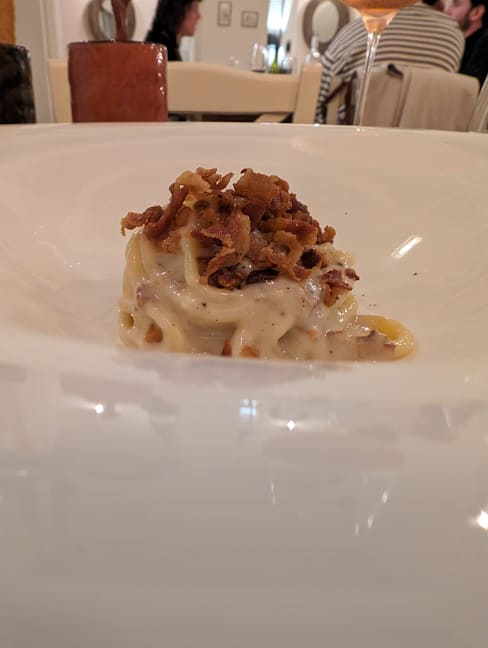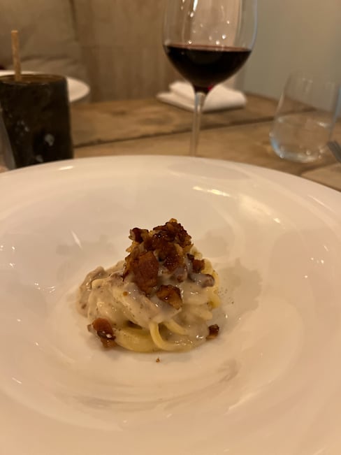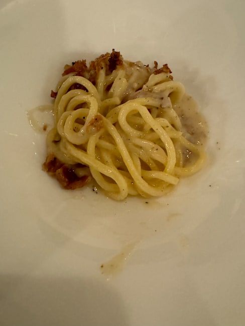 8/10Spaghetti carbonara was too salty. Great wine pairings