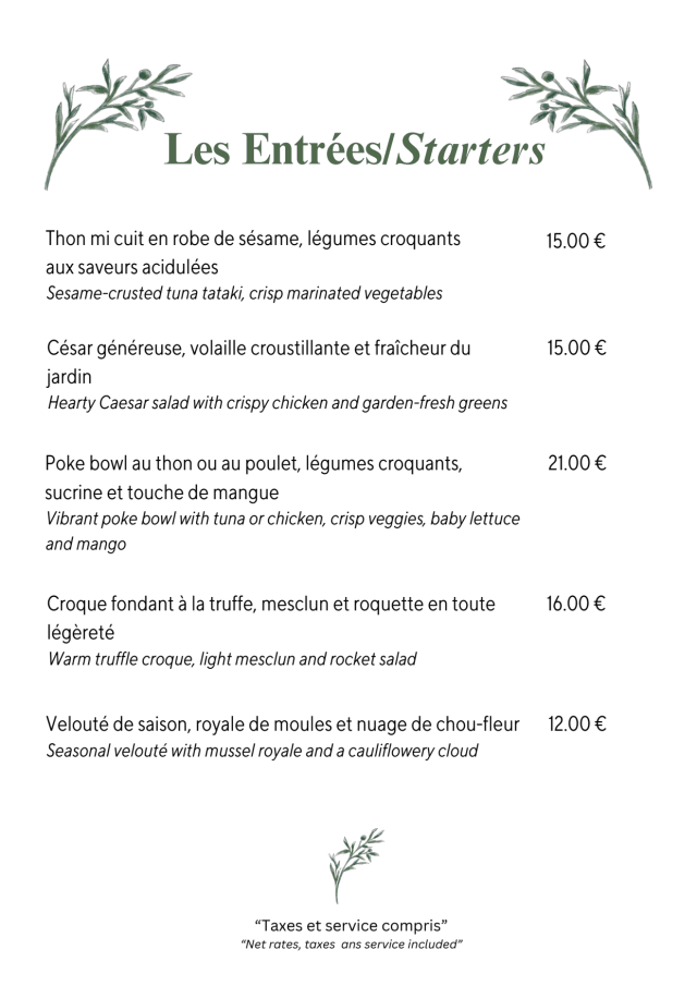 Le restaurant vous propose une carte épurée, construite en harmonie avec des recettes locales en circuit court (producteurs hyérois).