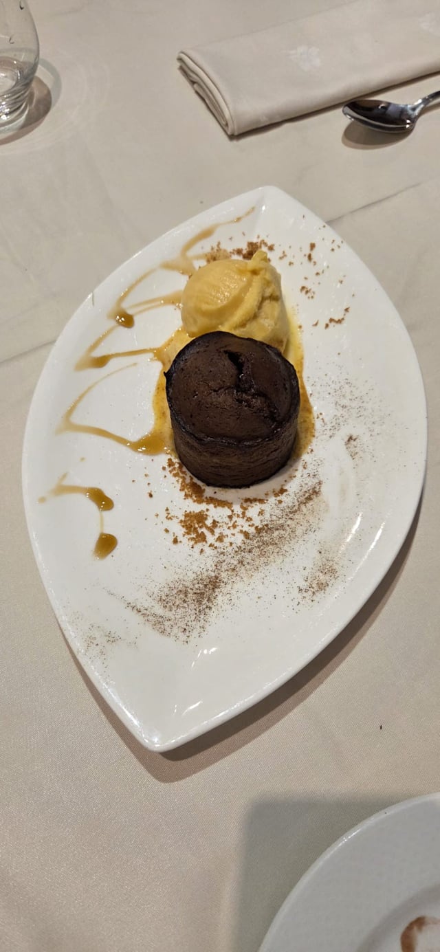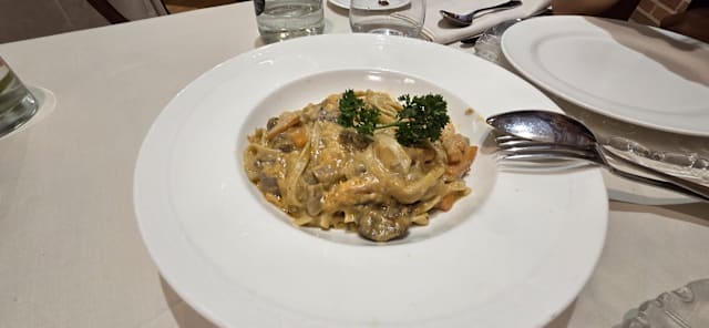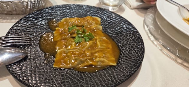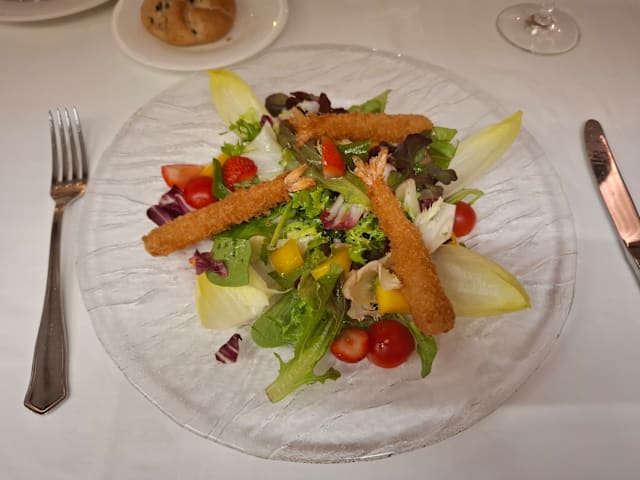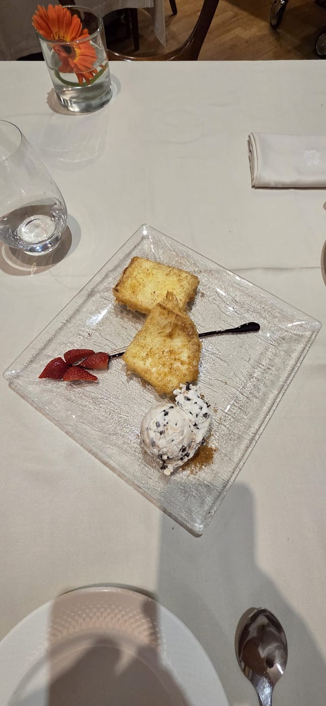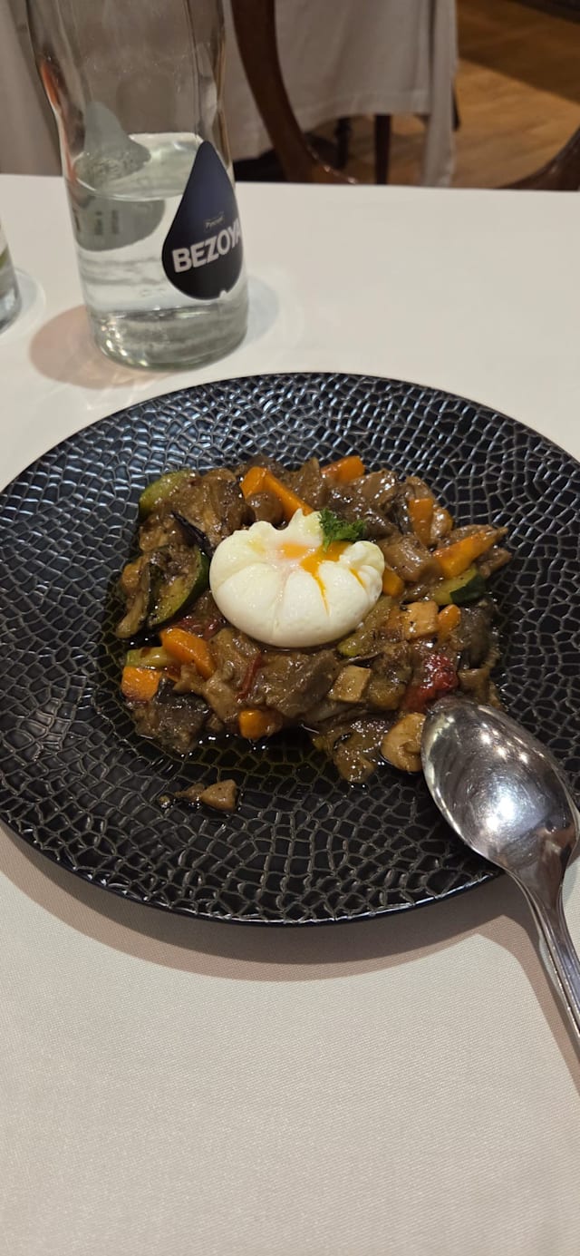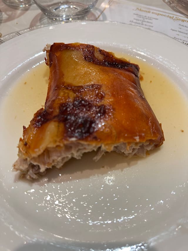 5.5/10The food was mediocre at best. Our group consisted of 10 people, 8 of whom ordered the set menu, which included a starter, main course, a glass of wine, a glass of water, and dessert. Two people ordered à la carte. One of them asked for a single glass of wine. To our surprise, the bill included the cost of a whole bottle of wine, even though only one glass had been ordered. When we asked the waiter about it, we were told that a second bottle had been opened, so it was added to the bill. We believe that if guests are being charged for a full bottle, it should be left on the table—which it wasn’t. We were also told that we weren’t charged for water, even though a glass of water was clearly part of the set menu. The main dish—suckling pig—was served without any sides. I was served a portion with ribs, which had barely any meat on it. Unfortunately, this was our first and last visit to this place.