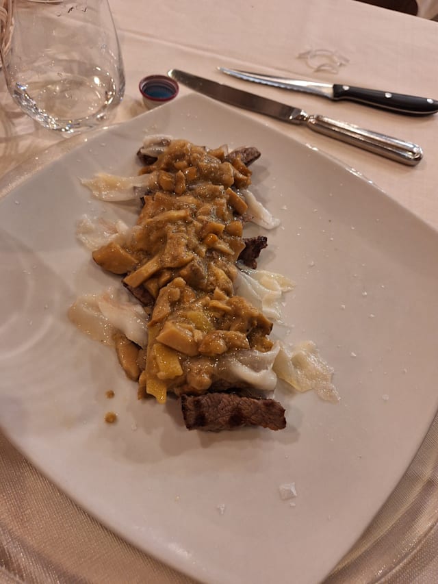 8.5/10This was the best dinner we had during our holidays in Tuscany. From the starter, to the main course to a fantastic dessert, every course was fantastic. You can taste the love to high quality products and good food from the chef and owner in every dish. The dishes, especially the starter of the mixed platter, had many surprises (a fruity jam with cinnamon for the cheese) and the very very tasty panna cotta and warm apple pie with warm home made vanilla sauce were a perfect ending. We also bought the home made olive oil which was so fruity and light! The service was good too, English speaking and friendly staff. The only thing that could be a bit improved is the atmosphere with more dimmed or candle light. Unfortunately we discovered the restaurant in this beautiful agriturismo estate too late at the end of our holiday. We would have definitely come more often!! Thank you for this extraordinary culinary experience!!!