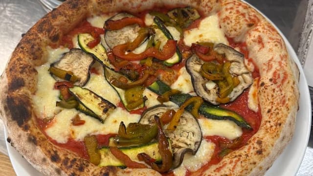 Pom. san marzano dop, fiordilatte di agerola, spolvero di grana padano 24 mesi, gorgonzola dop, taleggio, spianata calabra, basilico, olio evo a crudo
