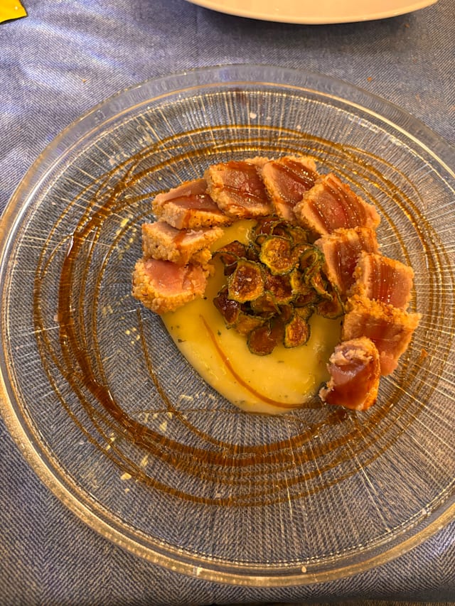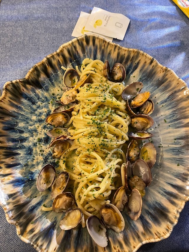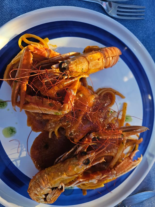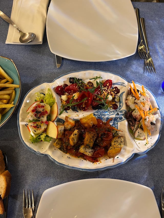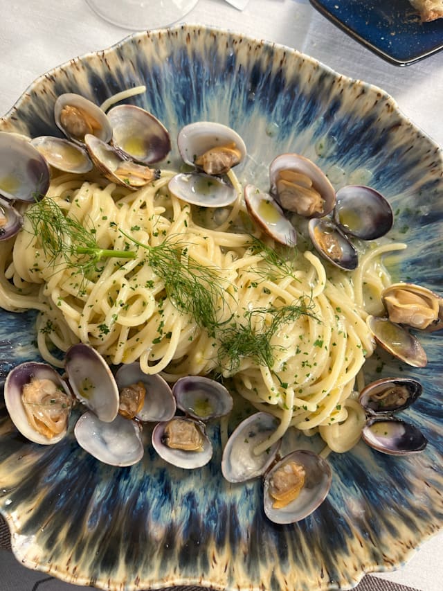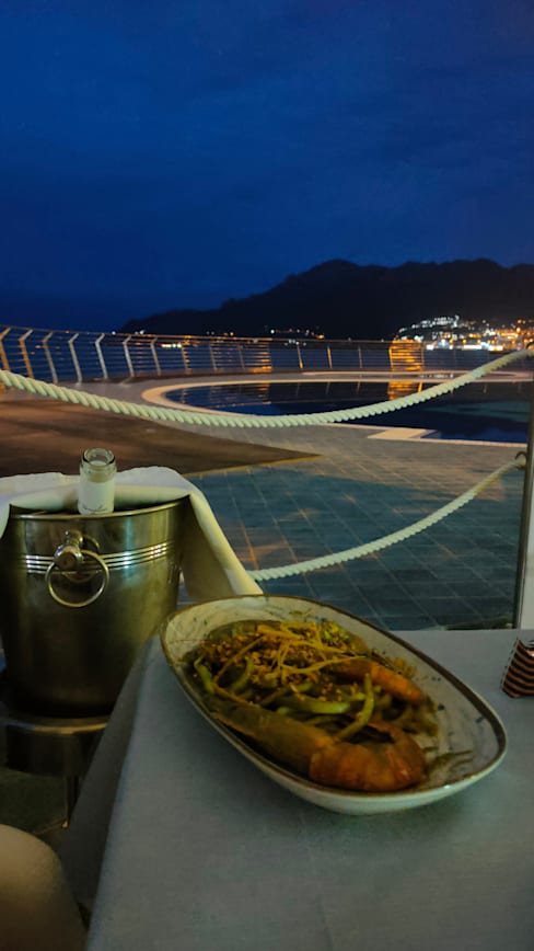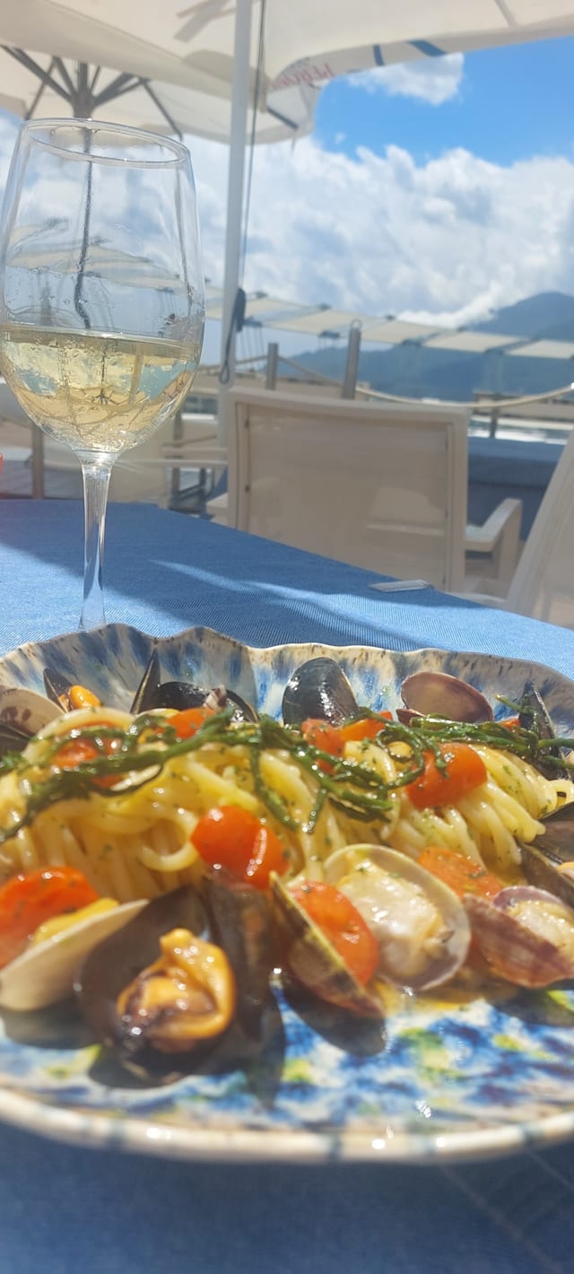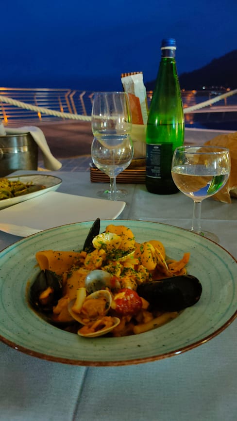 9.5/10A beautiful sunny mid-October day in Salerno. Perhaps the last we will see for some time. We parked at the Marina, 600 meters from the restaurant, and walked along the boardwalk, enjoying the sun. We arrived at the restaurant a few minutes early, but they were ready for us and gave us a table for two at the edge of the terrace, overlooking the beach. We took our time, relaxing and trying a few appetizers, watching the ferries to Amalfi and Positano come and go while a quiet breeze cooled us. The food was excellent, the pacchieri al dente in an exquisite seafood ragu; the catch of the day, fresh and sweet. We made the most of a warm October afternoon. We will return again someday.