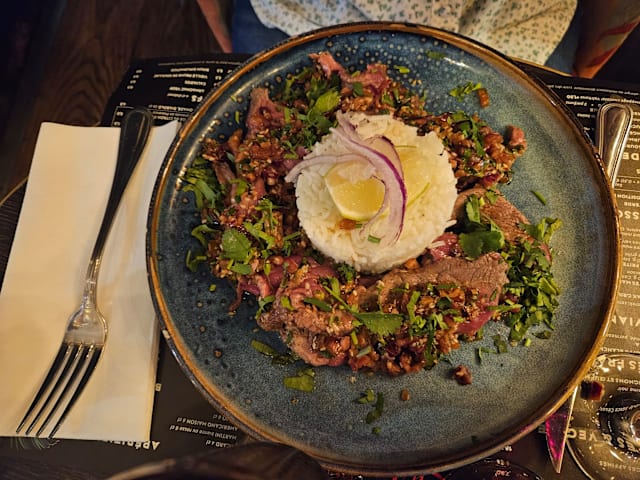 10/10The food is exceptional, the chef is really good at he does! Also very aware of the situation around the restaurant