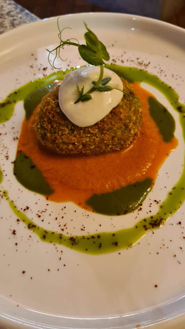 - Crocchetta di Pesce Spada al pistacchio / Swordfish croquette with pistachio Pesto alla trapanese e maionese al cappero Trapani-style pesto and caper mayonnaise Pesto und Kapernmayonnaise nach Trapani-Art( A,C,D) € 19.00