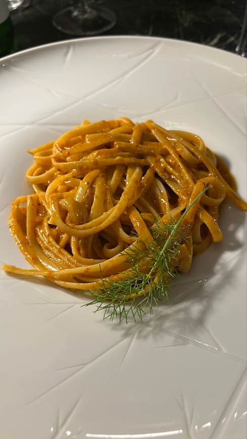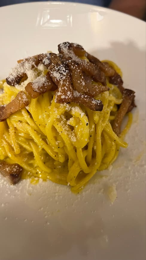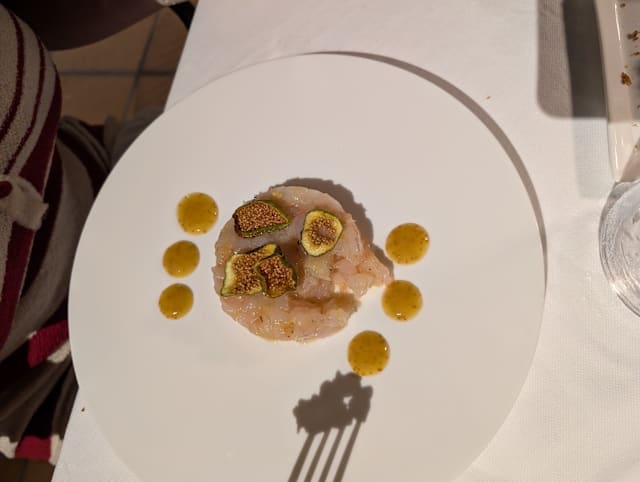 8/10The decor and atmosphere had a wonderful oldfashioned elegance and the service was frendly. We received a lovely homemade bread and spread as an extra strater. They had only whole bottles listed in the wine menu, but upon asking we found out that some wines could also be orded by the glass (8€) We had tartar di gampero rosa e fichi and Carpaccio di ricciola alla as a starter. Both dishes were completely lacking salt. For main course we had pasta: Classici Tradizione Romana wich was too spicy for me and Primo Piatto witch was too salty