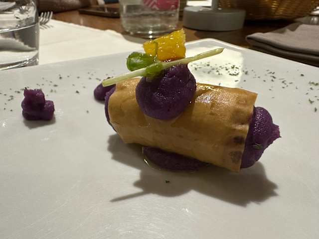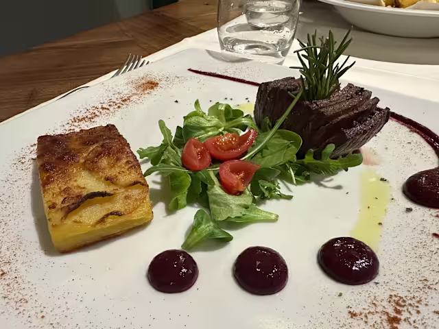 - Tagliata d'anatra, spadellata di taccole e prugne con slasa ai frutti di bosco