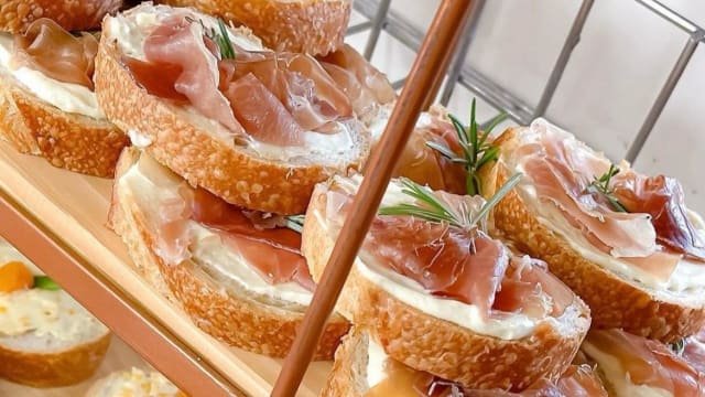 - (Mozzarella, tomate y albahaca y pan artesano)