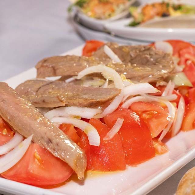 - Ensalada de tomate con ventresca de atún.