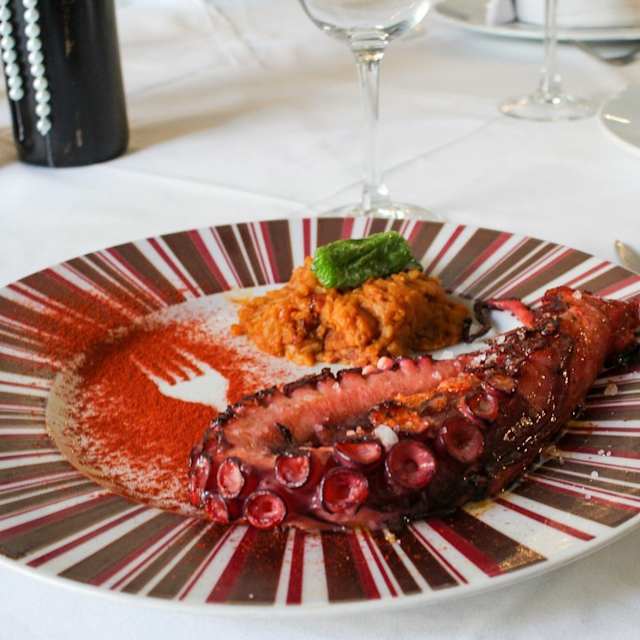 - Pulpo a la parrila acompañado de patata.