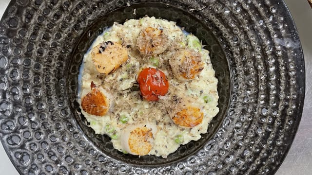 - Saint-jacques poêlées, Risotto à la crème truffée & truffe d’automne
