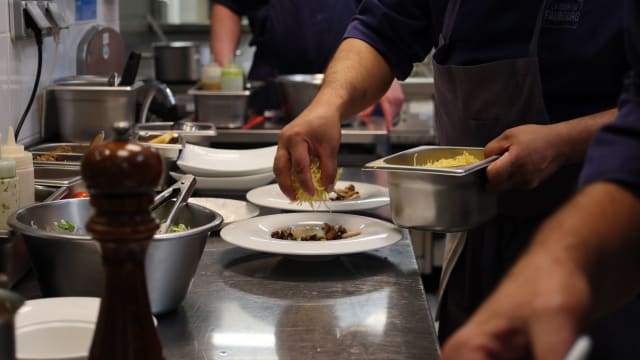 At La Cour du Faubourg, the chef is Erwan Caradec/Safia Drouiche.