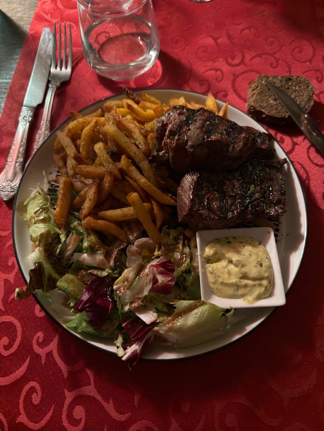 10/10When booking the restaurant via the Fork app we were given choices starting from 6pm. So we made on appointment for 6.30 pm. When we arrived the place was locked, luckily the owners wife noticed us and let us in after informing us they actually open at 7pm. Nevertheless we had a warm welcome and could order our drinks from an impressive wine list. A few minutes later the chef arrived and we could order food. We had the meat and cheese plate for two. Afterwards the Tarte Tatin for dessert. Food was really good, wine was excellent and the service was very friendly and attentive. We were also able to use our Yumsfor a discount of EUR 25. We really enjoyed our stay.
