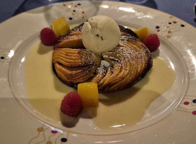 - Tarte fine aux pommes, crème anglaise vanillée (spécialité)