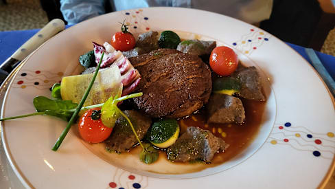 6/10I am from the USA and in the past have delighted in introducing friends and family to this historical place….over 50 years ago I came at the recommendation of my aunt. If I am in Normandy, I make a point of bringing my friends and family here to experience this historical place… in the past it has always been a wonderful experience until today. I was so disappointed in the service and the food and where I was seated. I had requested seating downstairs in my reservation that was made over a month ago, but yet I was seated upstairs. Our waiter was less than polite… actually snippy and seemed not very interested in making this a wonderful experience for us. The food was not overwhelming, and it was actually not very good. My veal was very tough and hard to chew. We waited a long time between courses and noticed that when the waitor presented the cheese tray to the other tables, they had at least 10 to 12 cheese choices but ours only had 4! Totally disappointed all around.