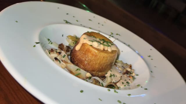 Caneló de Magret d'Ànec i foie amb beixamel de cheddar