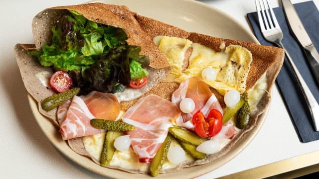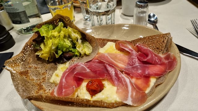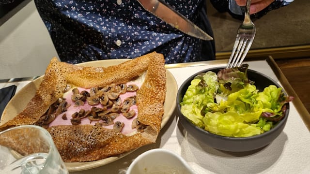 10/10Wonderful galette (crepe) in the Brittany style. Both were excellent and very filling, with a nice beer. The service was great, especially our server, Marie. Thank you for the nice lunch.