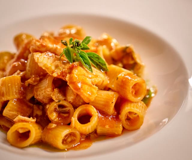 Paccheri al ragú di totano nero di praiano, patate e provola