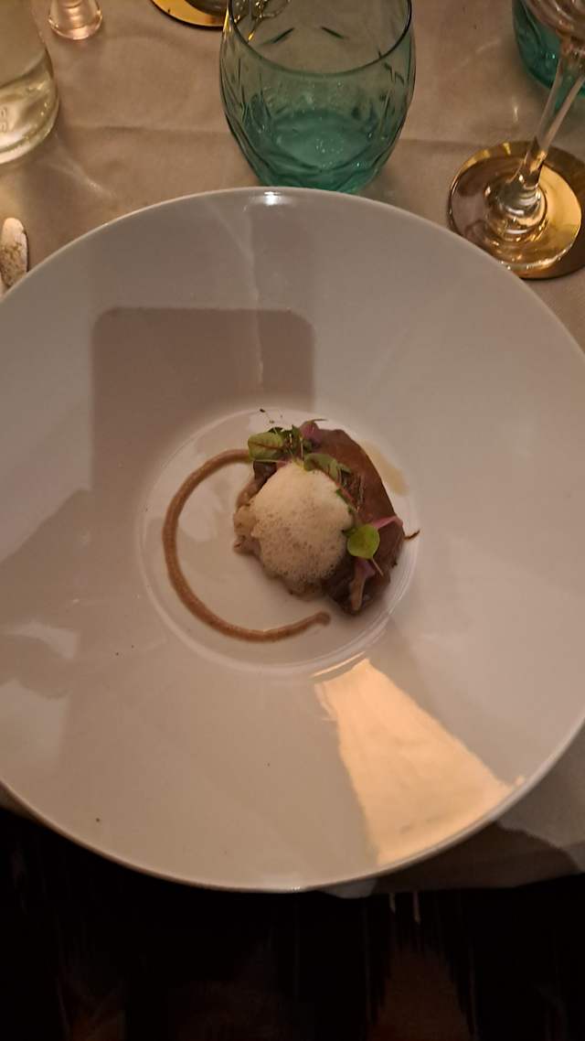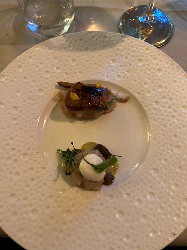 - Foirse gras caramellato e anatra fumé al legno di faggio