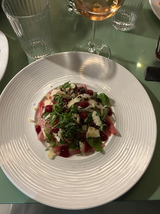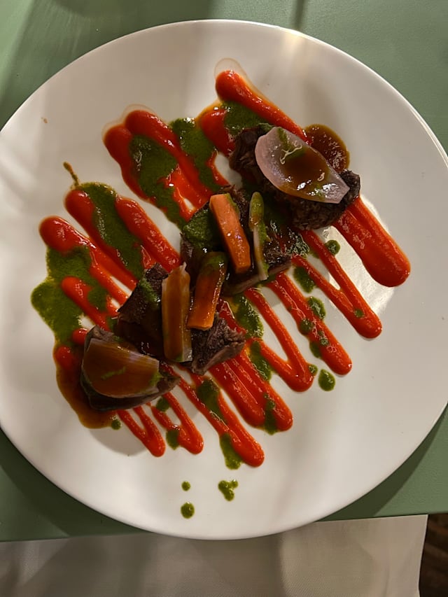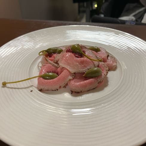 8/10We found this place on the Michelin app. It was a little interesting that only half the restaurant was filled at dinner time. I ordered the tasting menu, while my wife ordered Al a Carte. The tartare appetizer was very good, the second course was good and the dessert was exceptionaly, the only tiramisu I have ever liked (first one I've had in Italy). The bottle of wine was very good and reasonably priced. The service was about the same as our other experiences across Europe. Slow by American standards, but reasonable. We agreed that it was a good meal, but we would not go out of our way to eat here again.