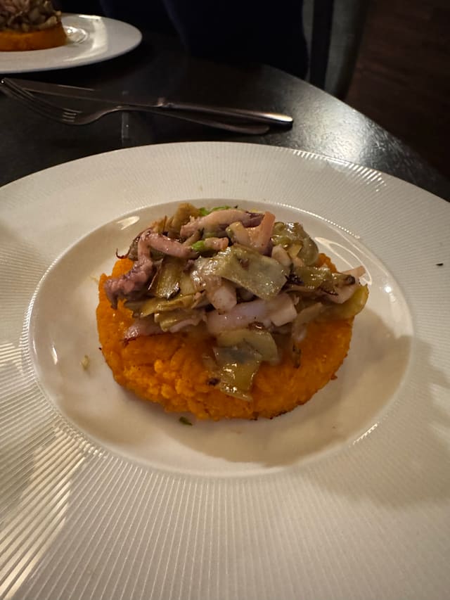 9.5/10We had an absolutely fantastic dinner. Great value for money. All dishes were superb. TheRiso croccante allo zafferano con calamari, carciofi, intingolo di erbe e limone was particularly outstanding. What's more, we had a bottle of white, a glass of red and two different amari as well as an espresso - all outstanding. A great place to eat out.