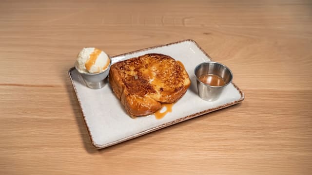 Brioche façon pain perdu, caramel au beurre salé et glace à la vanille