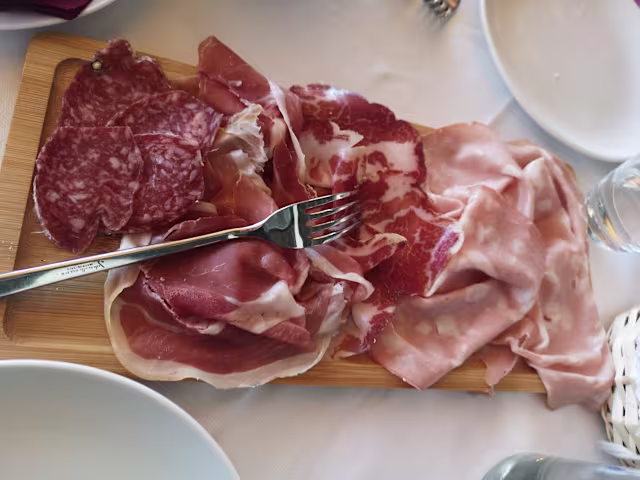 - Tagliere con selezione di salumi + squacquerone a cura del caseificio olmi e centomo, accompagnate da crescentine di nostra produzione