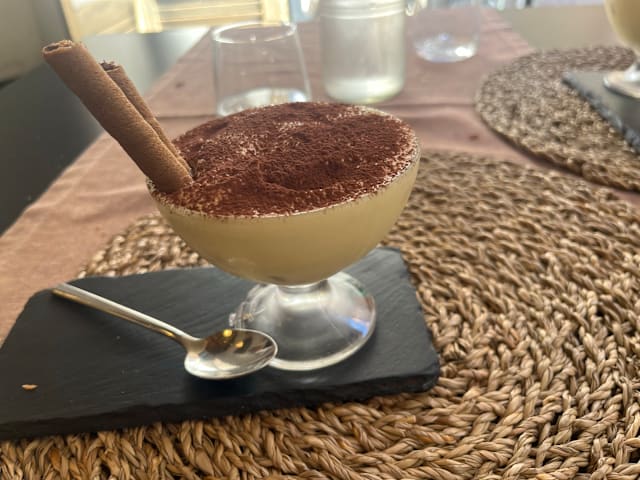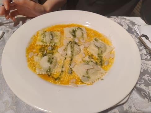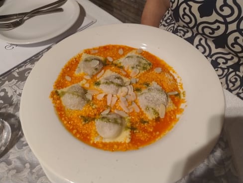 8.5/10Friendly and helpful waiter, tries very hard to speak English. Lovely food and nicely decorated dishes.