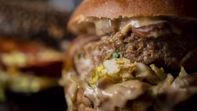 - Bun’s nature, sauce tartare BBQ, Iceberg, tomates confites, steak de boeuf, lard, cheddar fumé