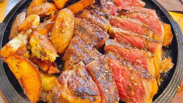 - Tagliata di manzo, servito con salsa di cioccolato e caffè