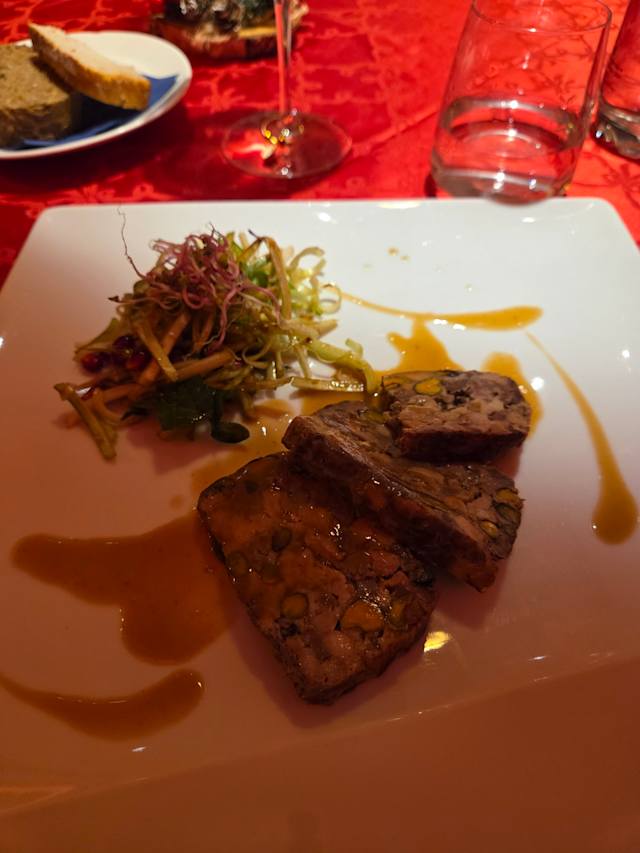 - Terrina di Piccione ai Pistacchi di Bronte con insalata di Puntarelle e Melograno