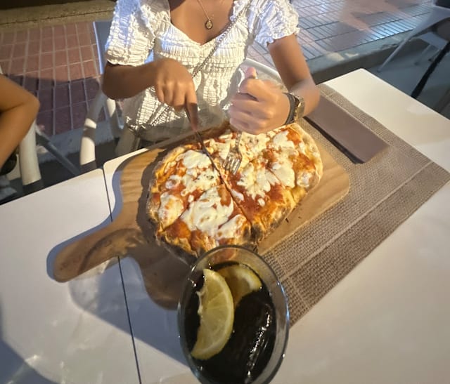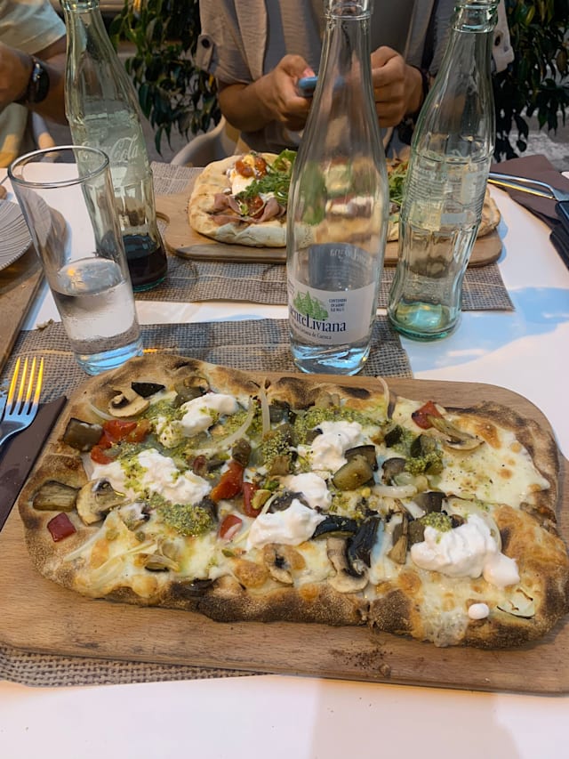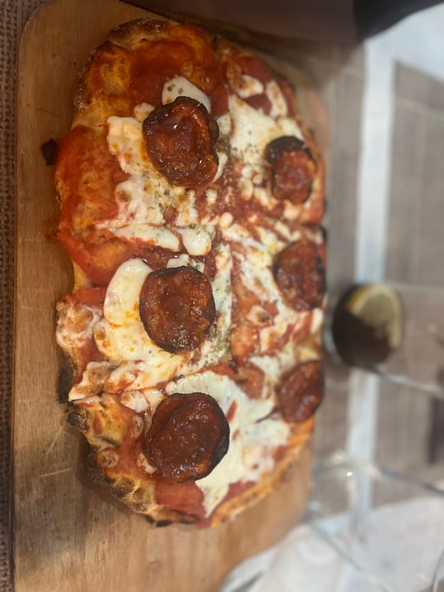 10/10Perhaps the best pizza we have both tasted in decades. One with spicy salami, thinly sliced onion and an Italian style wet sobrasada sausage on a home made tomato sauce. The second was pistachio pesto, Italian mortadella, sun-dried tomato and the wet inside of Burrata. Both served on a really yeasty, crunchy base. Washed down with a gorgeous white verdejo. Keep on doing what you are doing. Quality ingredients, perfectly prepared. Thank you. Just spot on.