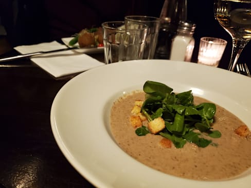 9/10A nice little restaurant with good food and ambiance. The service was very slow, possibly because we were in a back room away from most of the other customers. The music was mildly annoying [loud vibrating base] but we tuned out after a while. We were pleased with our selections and would order them again. The velouté de cèpes was particularly good, as was the falafel de courgette. Both of us had the filet de bar which was unremarkable but fine. Unfortunately we did not initially get the Fork discount as promised, but mentioned it to the waiter who gave us a revised bill with the Fork discounts on the appetizers and desserts, but not on the main dishes [our filet de bar]. Prices fortunately were not unreasonable or we would have complained again.