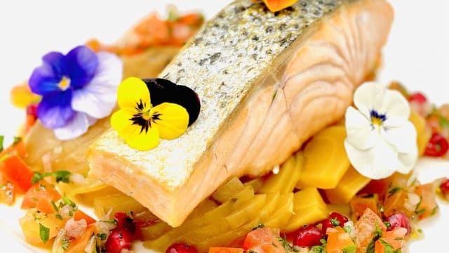 Explore the chef's selection menus with diverse dishes at fixed prices. Some are bookable via TheFork, while others are available onsite.