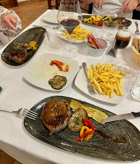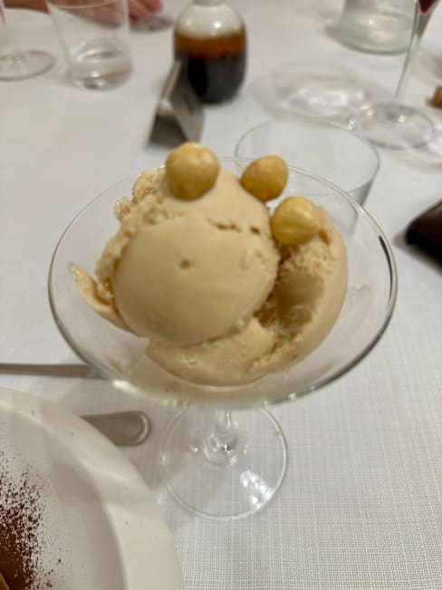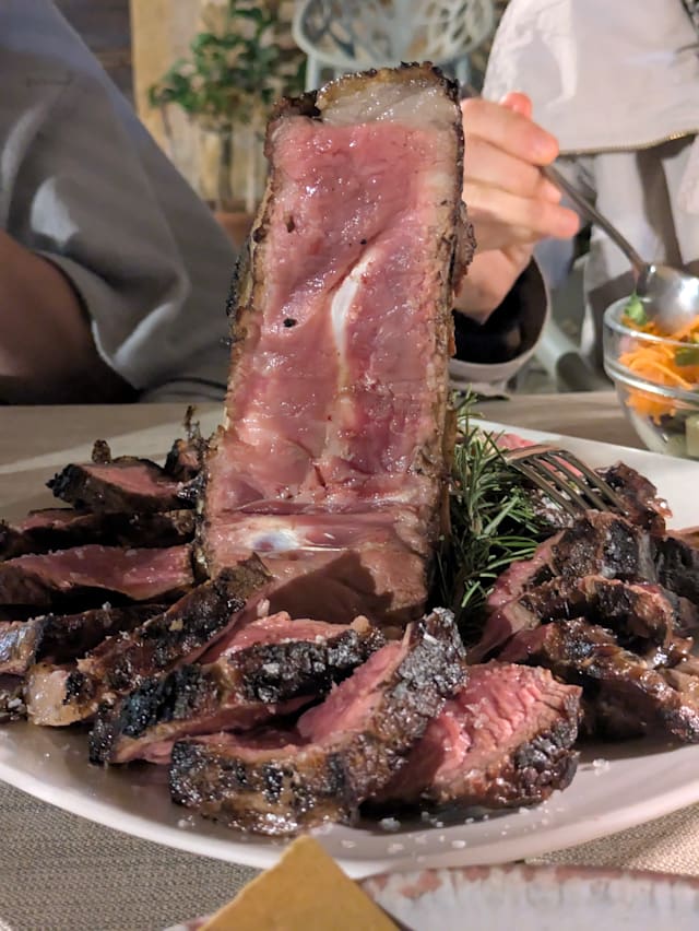 10/10A cozy and high quality restaurant located in Pomerance countryside. We had skilled waitresses who paid us much attention, delicious white wine from San Gigmigno and a great night. We started with a local placte of cheese and Charcuterie, it was great and fresh. After that I had the lamb loin which was excellent. My boyfriend had the pigeon ragu and in the end we had a t-bone steak which was special and creatively done. It was too rare for my taste. The salad and fries was nothing special. We finished off with a Limoncello which was terrific. The desserts looked amazing but unfortunately we were too full! I would definitely come again if I were in the area. During the night a musician played guitar, sang and played sax which created a lovely exciting atmosphere.