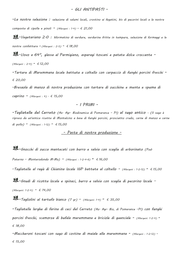 10/10Our final diner after one week in the Pomarance/Volterra region was wonderful. The food was best of all the days before, as was the atmosphere right in the middle of the Tuscany hills. The splendit service completed the evening. When possible, we will come again. F&J&J The Netherlands