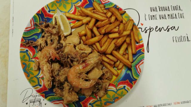 Frittura totani e gamberi e acciughe di piombino e patatine