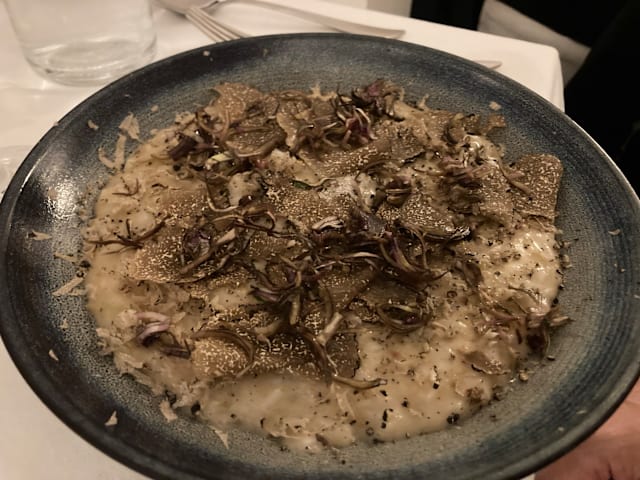 9.5/10Since you enter and during all the stay you feel welcome. We were family of 5, we have been twice in diferents days , the servíce done by Valerio was warm, helping and suggesting all the time to choose what you really want and close to details. Rissotos and Spaghetti with Tartufo Nero excellent! It s a very good option in the 6eme you can trust and go to have a really good Italian food and also for a change of French meals. Average price with wine of aprox 65 euros, was 60 euros/person
