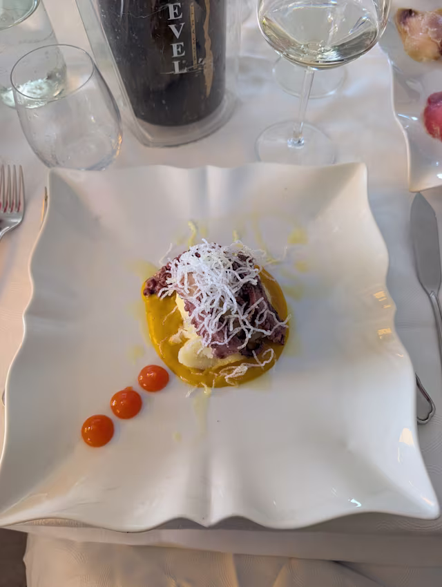 - Polpo saltato al pepe rosa su timballo di patate al limone