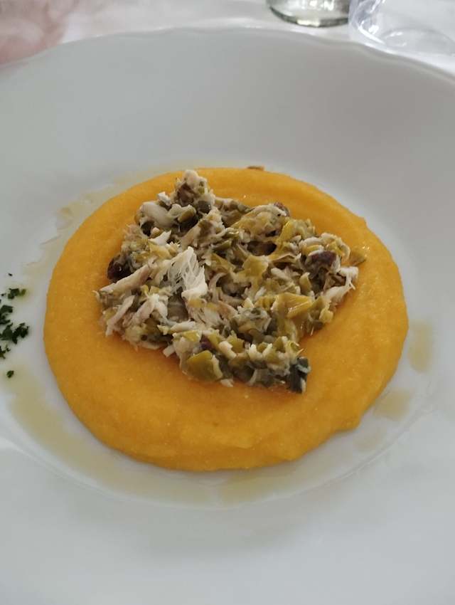 - Polenta e branzino con salsa ai porri in saor