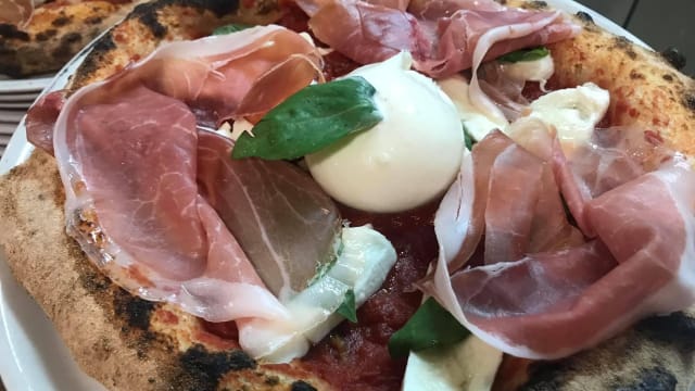 (Ripieno di.bufala dop. prosciutto catfo. Melanzane fritte e salsa di pomodoro. In uscita stracciatella di bufala)