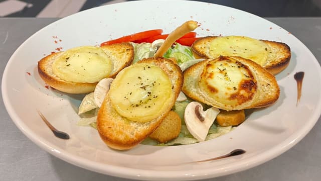 Salade, tomates, champignons, toast de chèvre chaud et sa sauce vinaigrette