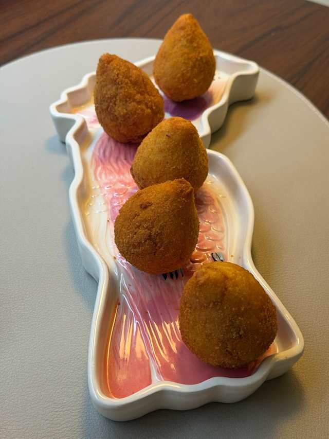 - Tradizionale panino brasiliano fatto con amido di manioca e formaggio, croccante fuori e morbido dentro. Accompagnato da mini fonduta di formaggio cremoso oppure dulce de leche.