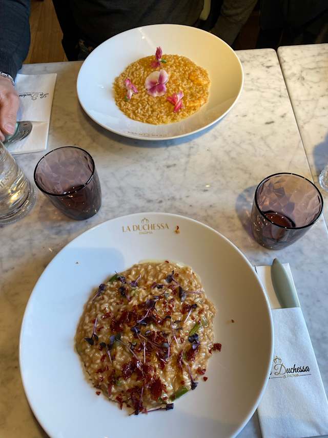- Risotto con prosciutto crudo ponte romano DOP 24 mesi, asparagi e parmigiano reggiano DOP 24 mesi