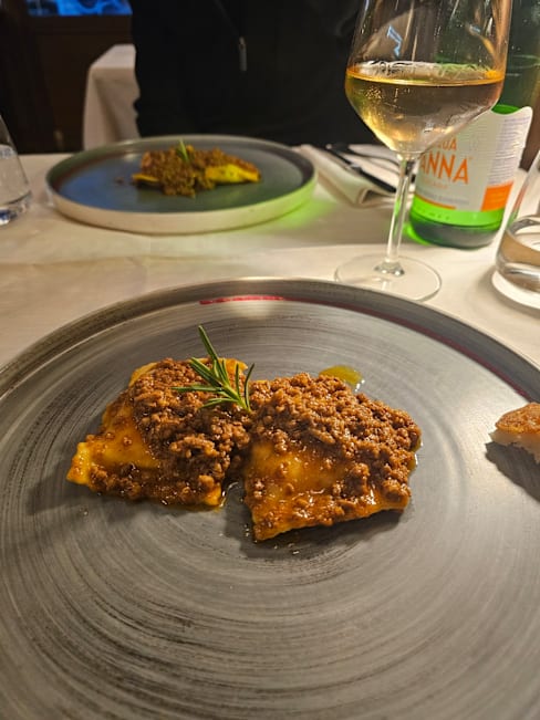 10/10I had an incredible dining experience! The service was impeccable – old-school, world-class, and genuinely exceptional. One thing to note: the street is pedestrian-only, so be prepared to exit your taxi or ride-share and walk a short distance. We were warmly greeted and seated outside under a large umbrella/tent, even though it was starting to drizzle. We were cozy and comfortable. I was thrilled to see lasagna as a special! As we enjoyed our wine and bread, the rain picked up, but our server kindly offered to move us inside, which we happily accepted. The main course was absolutely amazing. After our meal, we shared a small dessert, coffee, and a small apéritif – the perfect end to a wonderful evening. This restaurant will definitely be our go-to spot when we return to Florence.