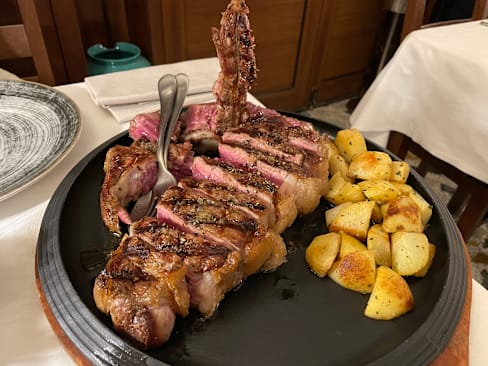 10/10There is a reason why this restaurant is rated so highly. The slab of steak I ordered, which was a 1.5 kg rib eye was cooked to order and the service by Marco was superb and coming from the US one of the best waiters I have had in Italy. Attentive with a sense of humor, and an edge of friendliness. I highly recommend. My wife and I obviously shared the rib eye. The spritz were delicious as well.