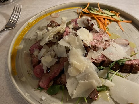 10/10Everything was delicious. We had the assortment of sheeps cheese with fruit mustard and honey and the caprice salad to start. The cheese was fantastic. We ate every bit of it. Four of us shared a 2 kg Florentine Chianina steak cooked medium rare. It was cooked to perfection. We are until we could eat no more and brought some back to our hotel for my husband who stayed back. The spinach side was very good. We had the panna cotta with Carmel(the best I've dated to date) and the fruit salad which I'd order again. The decaf espresso was excellent.